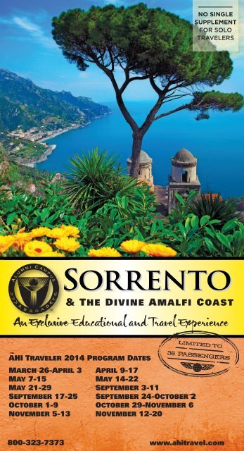 Carriers 2017 AHI Travel Printed in the USA. You may choose at the time of cancellation to apply the withheld administrative fee to a future AHI Travel program that will operate in the cur-. Normally I plan my own domestic and foreign travel.
