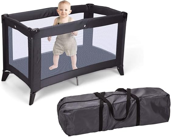 Home Styling Folding Travel Cot With Mattress Dark Grey Portable Baby Home Amazon Co Uk Baby