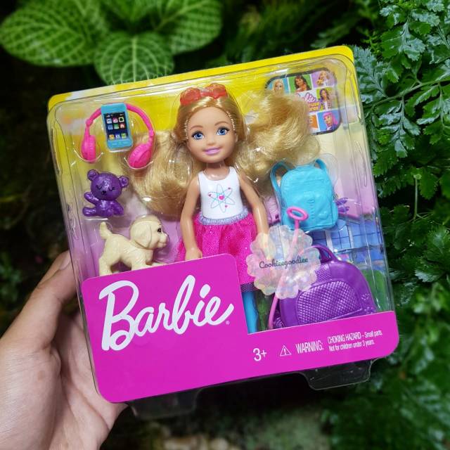 Chelsea doll has luggage a roller bag with clip that attaches to her hand and backpack travel accessories like headphones and. Barbie Travel Chelsea Doll FWV20 merupakan sebuah set mainan Barbie yang lucu dan juga menggemaskan. Chelsea doll and her puppy are ready for an adventure around the world with this travel set that includes more than five accessories.