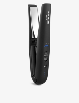 This straightener is equipped with titanium floating plate technology which ensures even distribution of heat and glides easily through hair. Its design is ergonomic. Balmain cordless hair straightener The Cordless Straightener specially designed for traveling and backstage work is the perfect tool for quick effortless straightening and easy curls and waves.